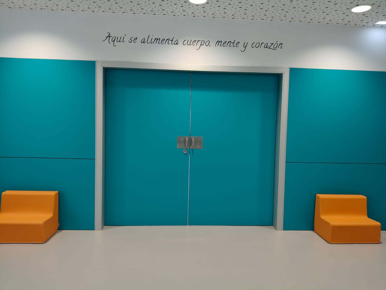 Espacios comunes como vestíbulo, sala de profesores y zonas de servicio, optimizados para la funcionalidad del centro.